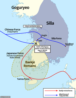 당시 누구도 생각하지 못한 대대적인 반란이었다. 백제 부흥의 기회를 잡은 부흥 군은 백제와 동맹관계였던 왜에게 파병의 도움을 청하고, 일본에 머물러있던 백제의 왕자인 '부여풍'의 귀국을 요청하여 부흥 군을 지휘해 달라는 부탁을 하게 된다. 이에 왜왕은 그 뜻을 이어받아 2년 반동안 약 2만 7천여 명, 배는 1천 척 만들며, 왜의 국운을 건 파병이 시작된다.