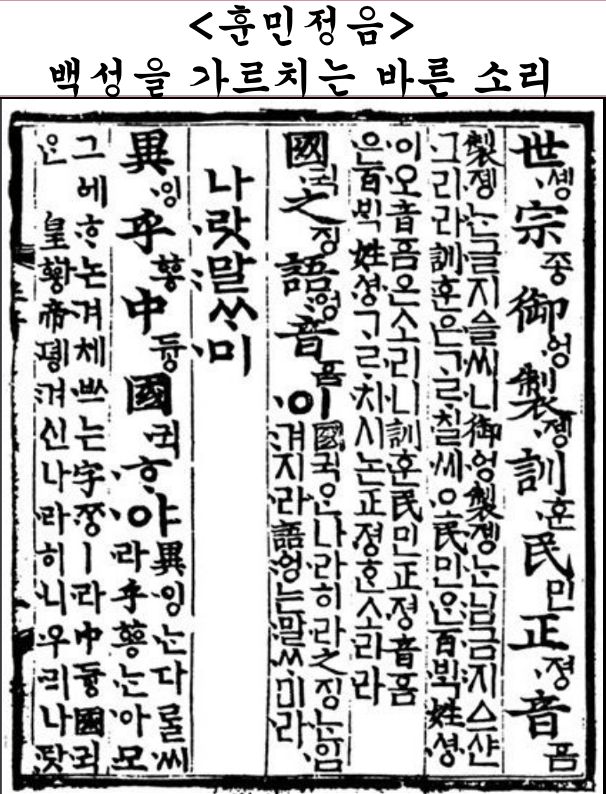 하지만 "우리나라 말이 중국과 달라 문자가 서로 통하지 않으므로 어리석은 백성들이 말하고자 하는 바가 있어도 끝내 제 뜻을 펴지 못하는 사람이 많다. 내가 이를 가엾게 여겨 새로 스물여덟 글자를 만드니 사람마다 하여금 쉽게 익혀 날마다 쓰임을 편하게 하고자 할 따름이다." 마침내 세종 25년 누구나 쉽게 배울 수 있고, 과학적인 '훈민정음'을 반포하게 됩니다. 이로써 전 세계 7천여 개의 문자 중 만든 사람과 시기를 아는 유일한 문자로 기록되어 있습니다. 게다가 왕이 백성을 위해 글자를 창제한 역사는 전 세계, 세종 이전에도 없었으며, 세종 이후에도 없는 유일무이한 사건입니다.