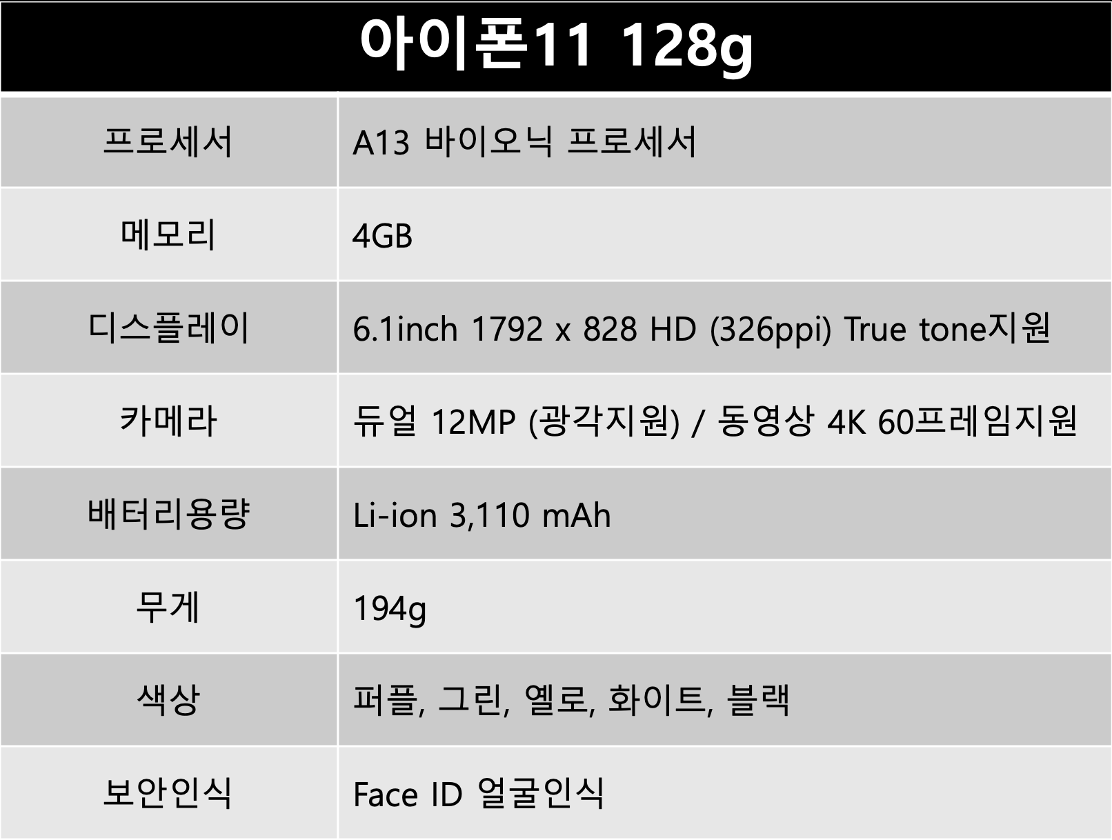 그렇다면 우선 제가 가지고 있는 아이폰11의 스펙을 볼까요?