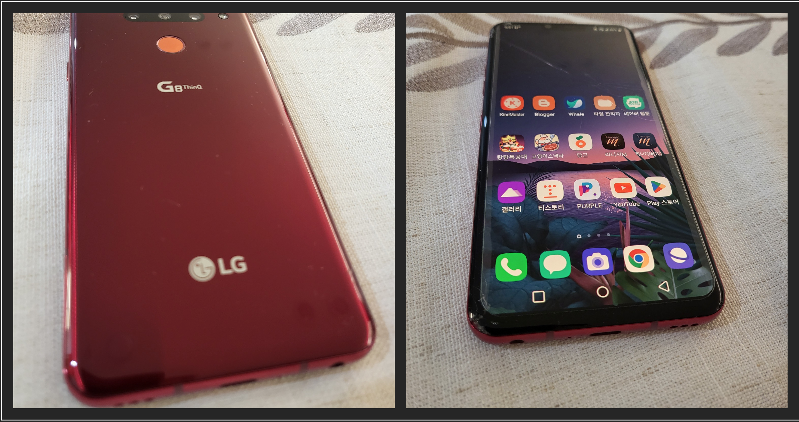 사운드 : 이것도 정말 할말이 많은데요. 갤럭시와 아이폰 등 다른 스마트폰 스피커를 듣다가 G8스피커로 음악이나 유튜브 영상을 보면 정말 소리가 잘 안 들립니다. 심지어 공식 유튜브광고에도 크리스털 사운드 올레드 기술이 적용된 디스플레이스피커라고 광고했는데, 그런 거 잘 모르겠고 물먹은 것 같은 소리가 나고, 크지도 않아 많이 아쉽습니다.