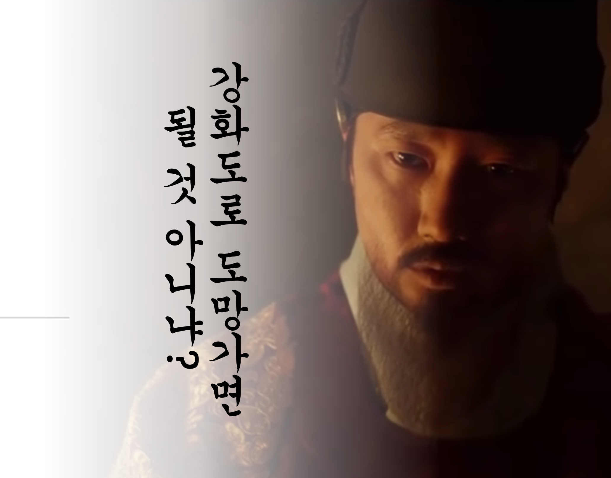 이에 후금은 중립외교를 펼쳤던 광해군의 원수를 갚는다는 명분하에 3만의 기병으로 조선을 침략합니다. 인조는 그들이 기동력을 앞세워 쳐들어온 것을 알아채고는 소현세자에게 분조를 맡기고, 강화도로 피난을 떠나게 되죠.